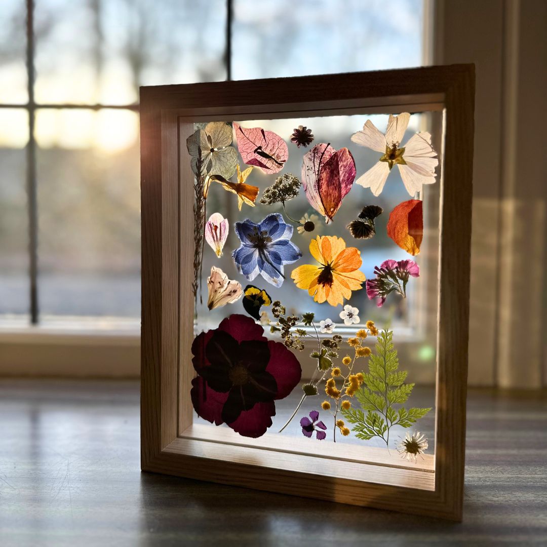 De transparante lijst komt het mooist tot zijn recht wanneer deze wordt neergezet, maar ophangen is ook mogelijk. Een stijlvolle en duurzame manier om de pracht van bloemen blijvend vast te leggen.