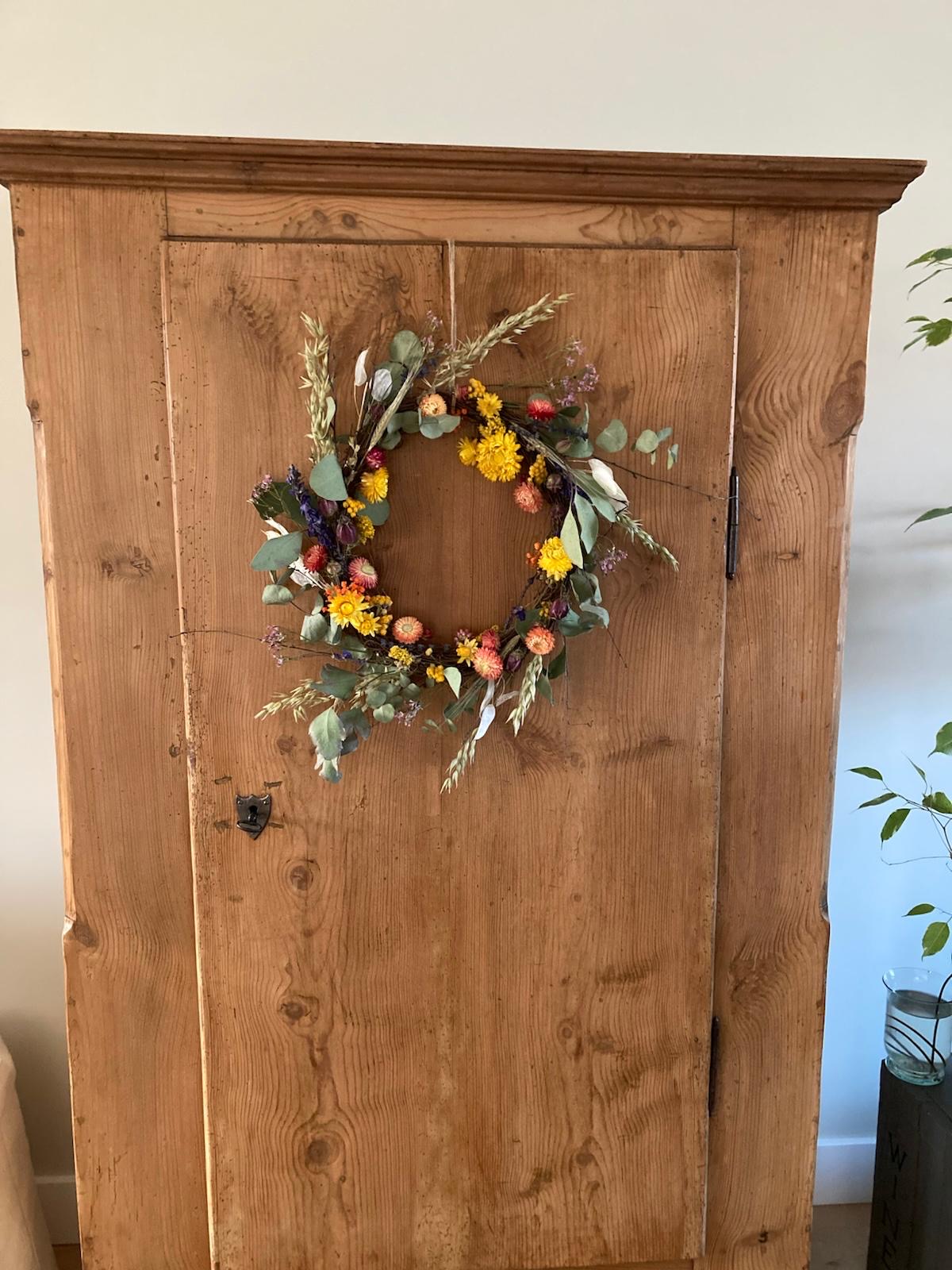 Alle bloemen worden gedroogd ingekocht bij de leverancier en behouden langdurig hun prachtige kleur en vorm. De bloemenkrans is perfect als sfeervolle woonaccessoire in je interieur of als decoratie aan de deur, mits deze overdekt hangt.